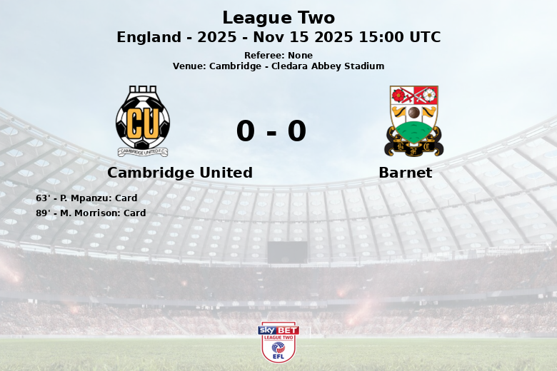 Cambridge United vs Barnet Nov 15 2025 15:00 UTC