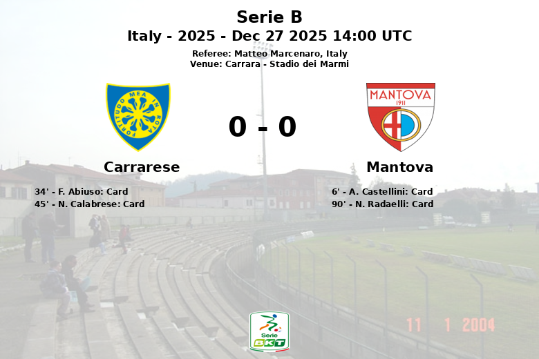 Carrarese vs Mantova Dec 27 2025 14:00 UTC