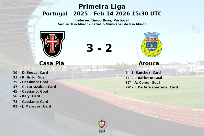 Casa Pia vs Arouca Feb 14 2026 15:30 UTC