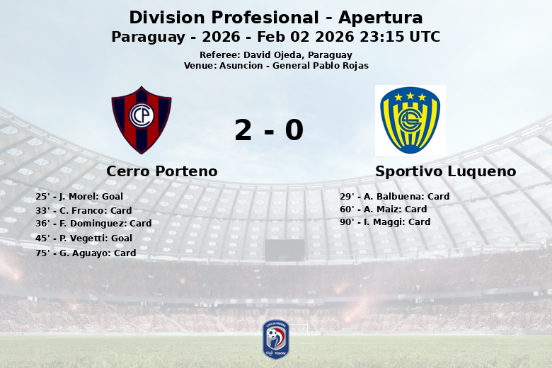 Lors d’un match disputé au stade General Pablo Rojas d’Asunción, Cerro Porteño s’est imposé face à Sportivo Luqueño lors d’un match comptant pour la troisième journée de l’Apertura de la Division Profesional paraguayenne. La rencontre, arbitrée par David Ojeda, a été marquée par l’intensité et les fautes constantes.
