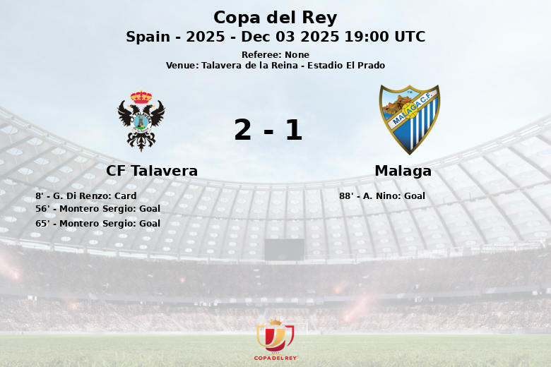 Talavera de la Reina – Dans un match disputé à l’Estadio El Prado, le CF Talavera s’est imposé face à Malaga lors du tour des 64èmes de finale de la Coupe du Roi. Le match, caractérisé par une possession et des statistiques de tirs, de corners et de fautes similaires pour les deux équipes, a connu une première mi-temps sans but avec un seul carton jaune adressé à G. Di Renzo du CF Talavera à la 8ème minute. C’est en seconde période que l’action s’est déchaînée, avec Montero Sergio marquant deux buts pour le CF Talavera aux 56ème et 65ème minutes, donnant à son équipe une avance importante. Bien que Malaga se soit battu jusqu’à la fin, A. Nino a réussi à réduire le score à la 88ème minute, mais cela n’a pas suffi à éviter la défaite. Le CF Talavera accède ainsi au tour suivant du tournoi.