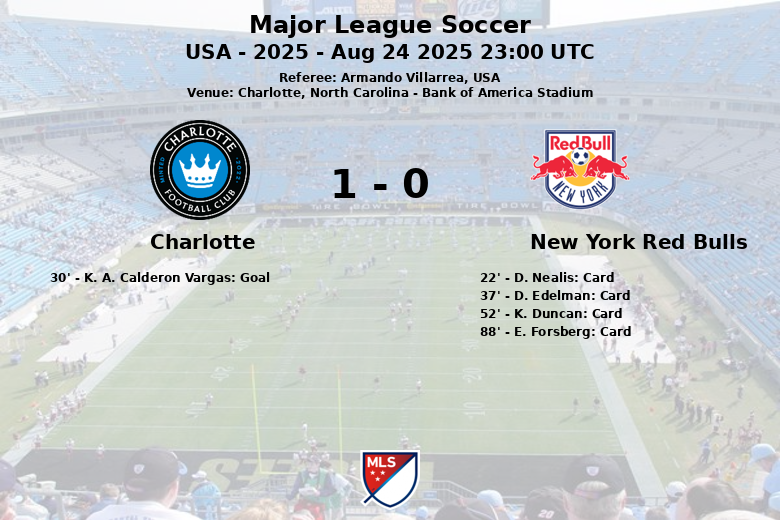 Charlotte, Caroline du Nord – Lors d’un match disputé au Bank of America Stadium, Charlotte FC a réussi à vaincre les New York Red Bulls avec un score de 1-0. Le match, comptant pour la 28e journée de la saison régulière de la Major League Soccer 2025, a été arbitré par Armando Villarreal.