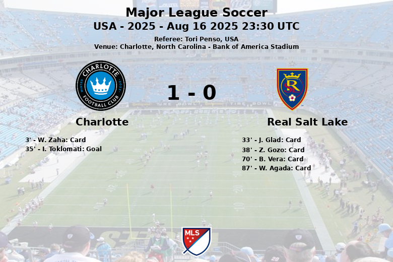 Charlotte, Caroline du Nord – Lors d’un match comptant pour la 27e journée de la Major League Soccer, Charlotte a remporté une courte victoire face au Real Salt Lake au Bank of America Stadium. Le match, arbitré par Tori Penso, a été marqué par un jeu physique et tactique.
