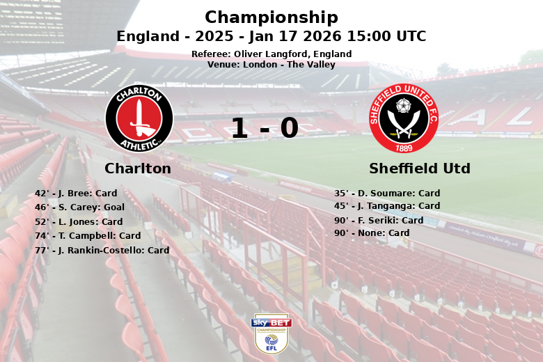 Le moment clé du match est survenu dès le début de la seconde mi-temps lorsque, à la 46e minute, S. Carey de Charlton a marqué un but sur une passe décisive de L. Dykes, donnant à son équipe l’avantage définitif. Sheffield United jouait déjà à dix depuis la 35e minute après un carton rouge à D. Soumare, et pour aggraver les choses, a subi une autre expulsion juste avant la mi-temps, cette fois pour J. Tanganga.