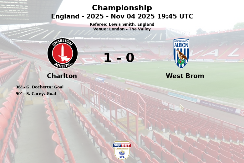 Charlton a pris l’avantage à la 36e minute grâce à un but de G. Docherty, qui s’est racheté après avoir manqué un penalty plus tôt. La joie de l’équipe locale a duré jusqu’au temps additionnel, lorsque S. Carey a marqué pour Charlton à la 90e minute, scellant ainsi le match nul final. Le match, marqué par 13 fautes commises par Charlton et 11 par West Brom, s’est terminé sans carton jaune ni rouge pour aucune des deux équipes.
