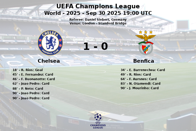 Londres a été le théâtre d’une rencontre disputée de la Ligue des Champions de l’UEFA, où Chelsea s’est imposé face à Benfica à Stamford Bridge. Le match, arbitré par l’Allemand Daniel Siebert, s’est caractérisé par l’intensité du jeu et un nombre important de cartons distribués.