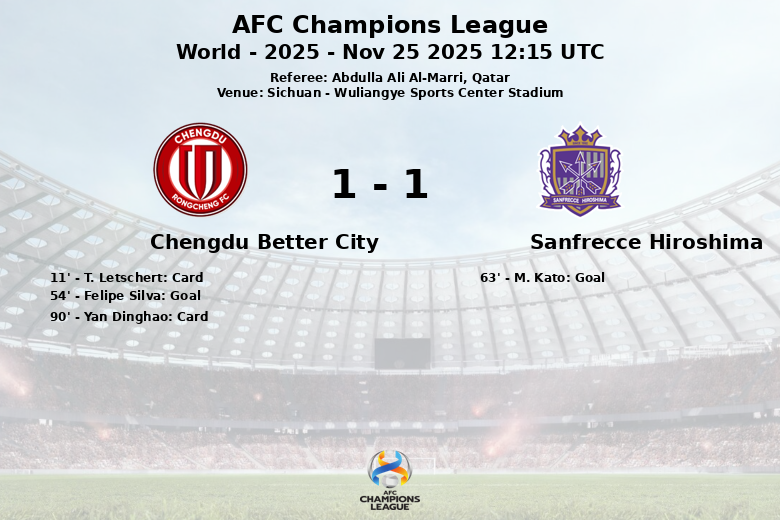 Sichuan, Chine – Dans un match acharné au Wuliangye Sports Center Stadium, Chengdu Better City et Sanfrecce Hiroshima ont fait match nul lors de leur rencontre de phase de groupes de la Ligue des Champions de l’AFC. L’arbitre qatari Abdulla Ali Al-Marri a officié le match.