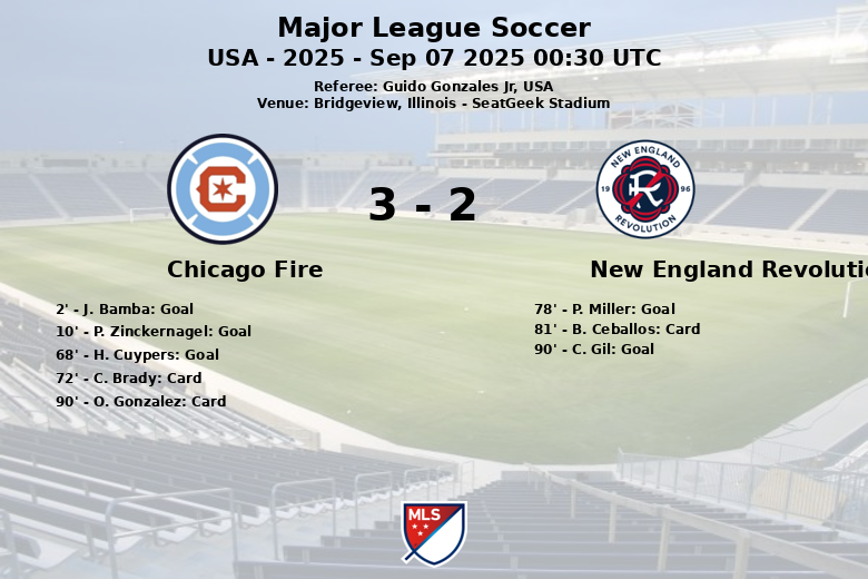 Chicago Fire vs New England Revolution Sep 07 2025 00:30 UTC