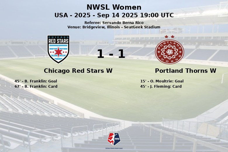Bridgeview, Illinois – Dans un match acharné au SeatGeek Stadium, les Chicago Red Stars et les Portland Thorns ont fait match nul 1-1 lors d’un match de la 20e semaine de la saison régulière de la NWSL Women.