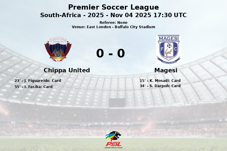 East London, Afrique du Sud – Dans un match correspondant à la 12e journée de la Premier Soccer League 2025, Chippa United et Magesi se sont affrontés au Buffalo City Stadium, ce qui a donné un match qui, bien que dépourvu de buts, était rempli d’intensité tactique et de plusieurs avertissements.