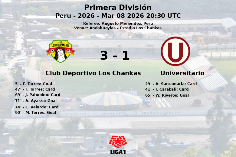 Club Deportivo Los Chankas vs Universitario Mar 08 2026 20:30 UTC