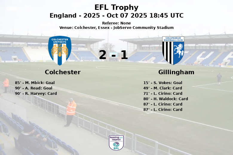 Colchester, Essex – Dans un match palpitant au JobServe Community Stadium, Colchester United a orchestré une remontée remarquable contre Gillingham lors de leur match de l’EFL Trophy, Southern – 2. Le match, qui s’est déroulé le 7 octobre 2025, s’est terminé par un résultat favorable à l’équipe locale.