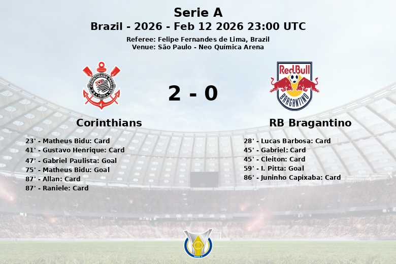 La victoire a été scellée à la 75e minute avec un but de Matheus Bidu, augmentant l’avance de Corinthians. Le match s’est terminé avec un nombre élevé de cartons jaunes, quatre pour Corinthians et quatre pour RB Bragantino, soulignant la dureté de la rencontre. Corinthians a célébré la victoire devant son public, consolidant ainsi sa position au classement du championnat.