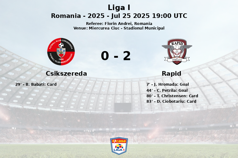 Le résultat final consolide la position du Rapid au classement de la Liga I, tandis que le Csikszereda cherchera à améliorer ses performances lors des prochains matchs.