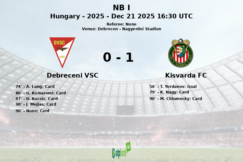 Debreceni VSC vs Kisvarda FC Dec 21 2025 16:30 UTC