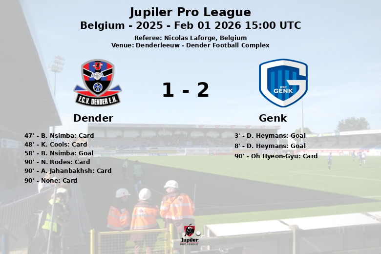 Dender, malgré une plus grande possession de balle (51%), a eu du mal à trouver son rythme et a entrevu une lueur d’espoir avec le but de B. Nsimba à la 58ème minute. Cependant, la défense de Genk est restée solide et a frustré les tentatives de Dender d’égaliser. Le match a été émaillé de cartons jaunes, notamment pour Dender, qui a accumulé quatre avertissements. Genk a également reçu un carton jaune dans le temps additionnel. Bien que Dender ait dépassé Genk en termes de tirs (22 contre 8) et de corners (8 contre 2), l’efficacité de Genk dans les moments clés lui a assuré la victoire. L’arbitrage de Nicolas Laforge a été mis à l’épreuve dans un match avec de nombreuses fautes et une forte tension.