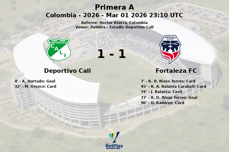 Deportivo Cali vs Fortaleza FC Mar 01 2026 23:10 UTC