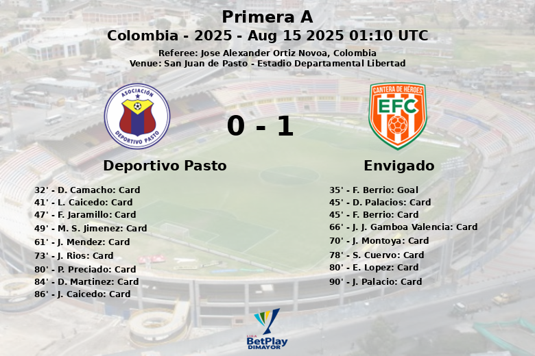 Le seul but du match a été marqué à la 35e minute par F. Berrio, sur une passe décisive de W. Hurtado, faisant pencher la balance en faveur des visiteurs. Bien que Deportivo Pasto ait dominé la possession du ballon avec 62 % contre 38 % pour Envigado, il n’a pas réussi à transformer sa supériorité dans le jeu en buts. L’équipe locale a tiré 13 fois au but, dont seulement 2 cadrés, contre 8 tirs pour Envigado, dont également 2 cadrés.