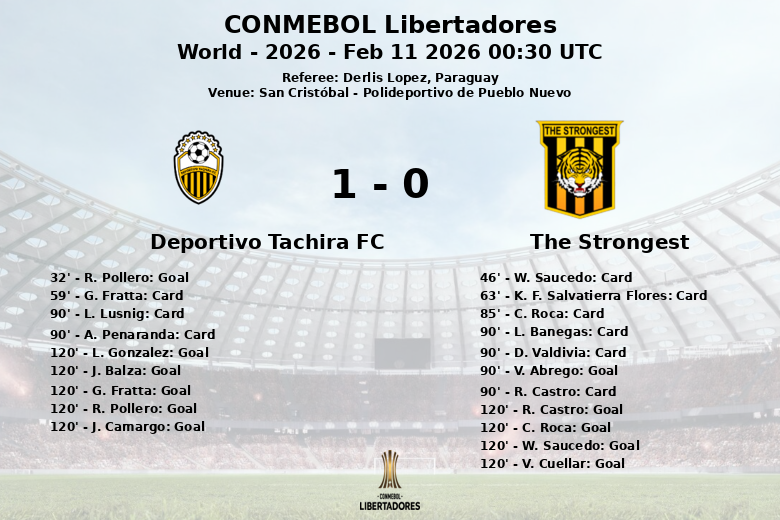 La fin du match a été chaotique. V. Abrego a raté un penalty crucial pour The Strongest dans le temps additionnel. La séance de tirs au but n’était pas pour les âmes sensibles, les deux équipes marquant et ratant alternativement. Finalement, Táchira s’est imposé lors de la séance, assurant son passage au tour suivant.