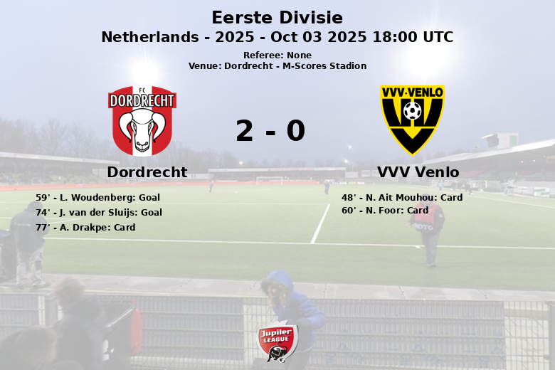 Dordrecht vs VVV Venlo Oct 03 2025 18:00 UTC