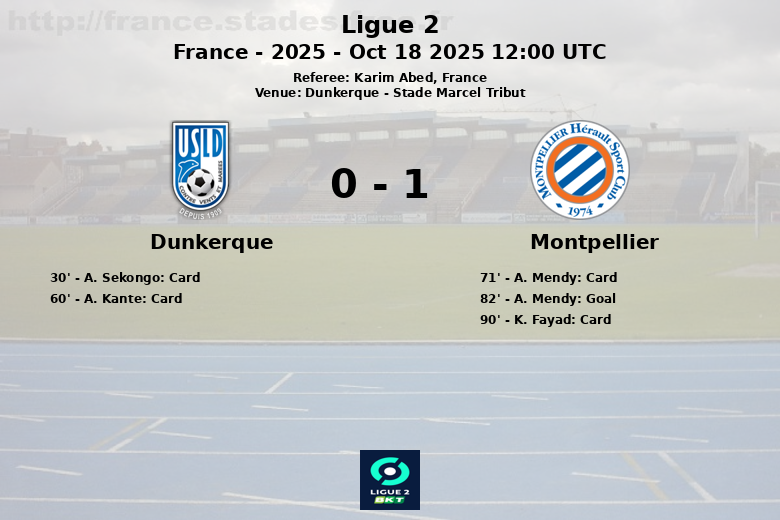 Le match a été marqué par les fautes et les cartons jaunes. Dunkerque a accumulé 10 fautes et reçu deux cartons, tandis que Montpellier a commis 8 fautes et a également écopé de deux cartons. Le moment décisif est intervenu à la 82e minute, lorsque A. Mendy, servi par V. Orakpo, a marqué le but qui a donné la victoire à Montpellier.