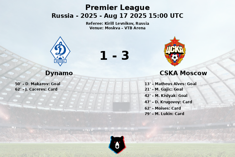 Moscou, Russie – Dans un match électrisant qui s’est déroulé à la VTB Arena, le CSKA Moscou a triomphé du Dynamo sur le score de 3 à 1. Le derby de Moscou, correspondant à la cinquième journée de la Premier League russe, saison 2025, a été témoin d’un CSKA létal en première mi-temps.