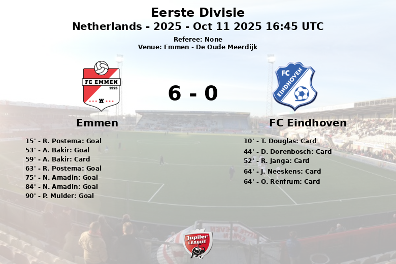 Le match s’est terminé par une victoire nette d’Emmen, qui a démontré sa force à domicile face à un FC Eindhoven qui n’a pas pu contenir l’attaque adverse.