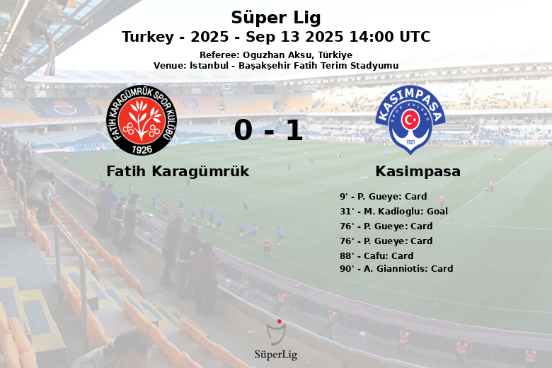 Kasimpasa, de son côté, s’est montré plus agressif dans la course au ballon, commettant un total de 15 fautes et recevant 3 cartons jaunes et un carton rouge, ce dernier pour P. Gueye à la 76e minute, après un deuxième avertissement. Fatih Karagümrük a commis 7 fautes et n’a reçu aucun avertissement. Le match a été intensément disputé et a reflété la tension existante entre les deux équipes.