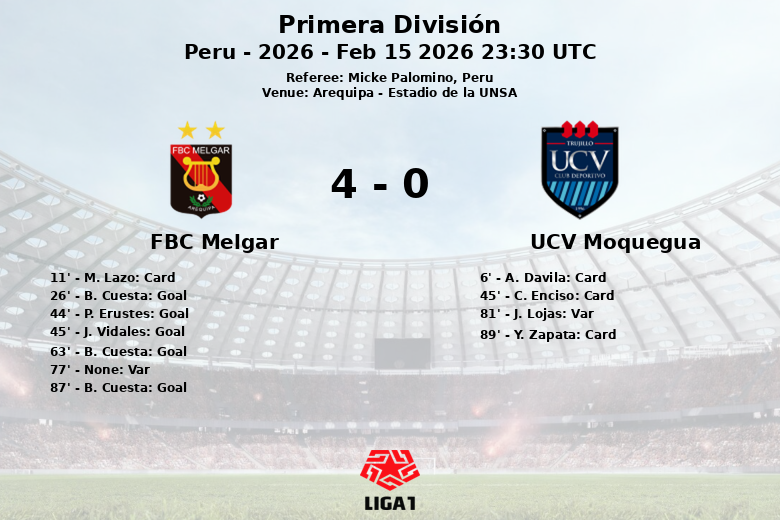 FBC Melgar vs UCV Moquegua Feb 15 2026 23:30 UTC