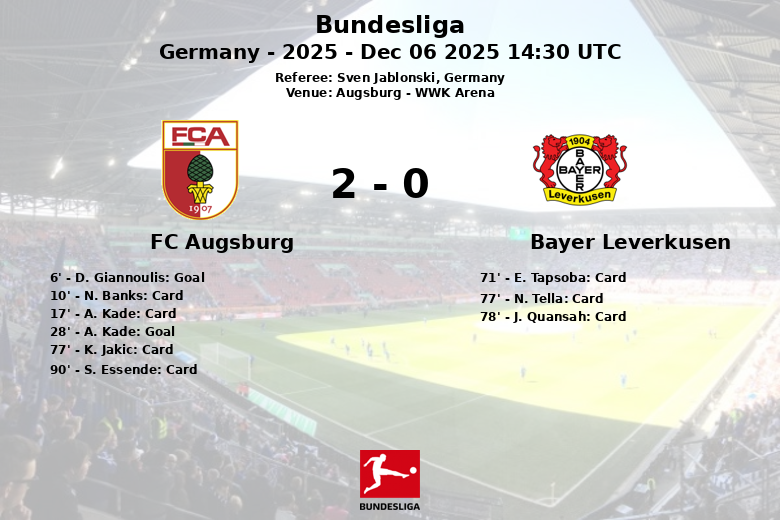 FC Augsburg vs Bayer Leverkusen Dec 06 2025 14:30 UTC