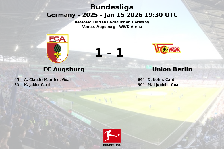 La tension est montée dans les dernières minutes. À la 89e minute, D. Kohn de l’Union Berlin a reçu un carton rouge, laissant son équipe à dix. Alors qu’une victoire pour Augsbourg semblait inévitable, M. Ljubicic de l’Union Berlin a marqué un but à la 90e minute, sur une passe décisive de A. Ilic, sauvant ainsi un point précieux pour son équipe. Augsbourg, malgré moins de tirs (8) et moins de possession, a été surpris à la fin du match. Le match s’est terminé avec un total de 9 fautes commises par Augsbourg et 18 par l’Union Berlin.