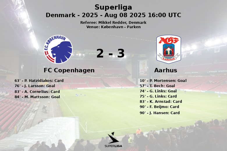 G. Links, d’Aarhus, a augmenté l’écart à la 74e minute. Mais la réaction locale a été immédiate, avec un but de J. Larsson à la 76e minute. La pression du FC Copenhague s’est intensifiée, et M. Mattsson a réduit le score sur penalty à la 84e minute, fixant le score final.