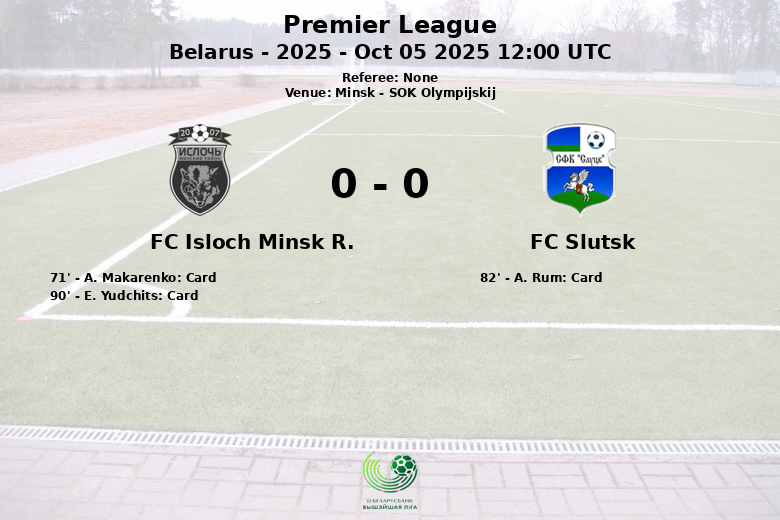 Minsk, Biélorussie – Le FC Isloch Minsk R. et le FC Slutsk se sont quittés sur un match nul et vierge au SOK Olympijskij de Minsk, lors de la 24e journée de la Premier League biélorusse 2025. Le match, dépourvu d’éclat offensif, a été caractérisé par une parité et une rareté des occasions de but claires.