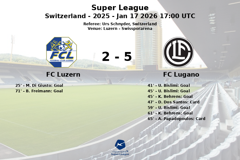FC Luzern vs FC Lugano Jan 17 2026 17:00 UTC