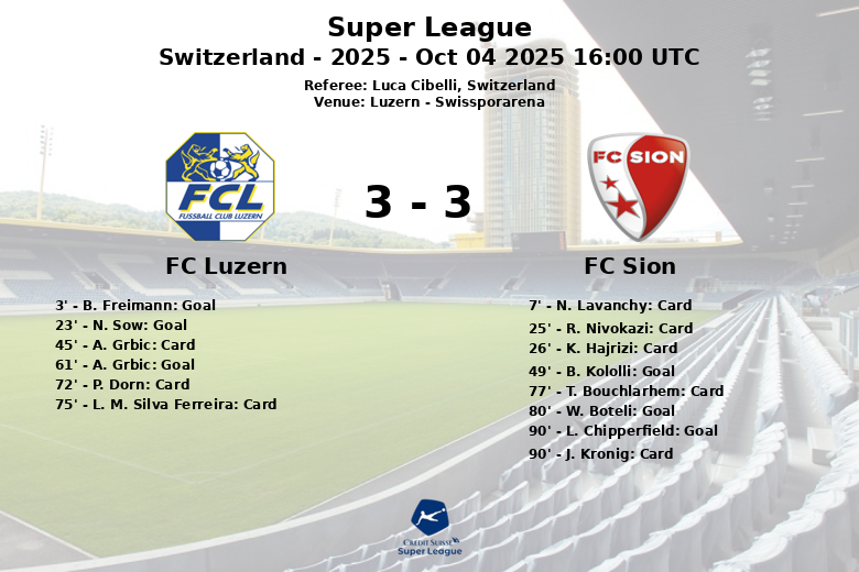 FC Luzern vs FC Sion Oct 04 2025 16:00 UTC