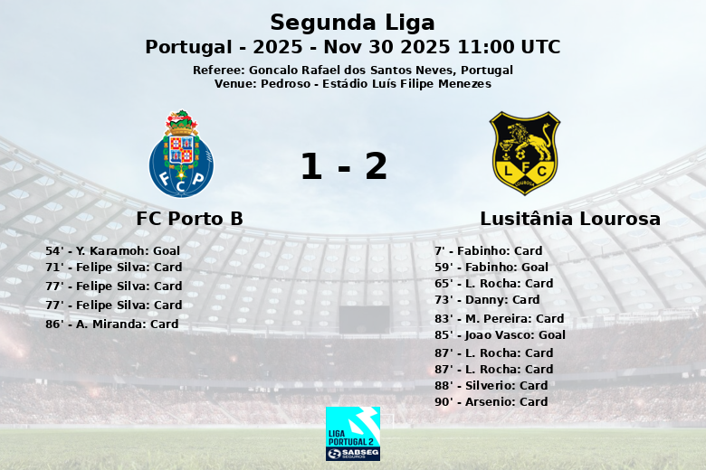 Le FC Porto B a pris l’avantage à la 54e minute grâce à un but de Y. Karamoh. Cependant, la joie des locaux fut de courte durée, Fabinho ayant égalisé pour Lusitânia Lourosa à la 59e minute. Le match est resté à égalité jusqu’aux dernières minutes, lorsque Joao Vasco, à la 85e minute, a donné l’avantage à Lusitânia Lourosa, il semblait qu’ils allaient gagner le match.
