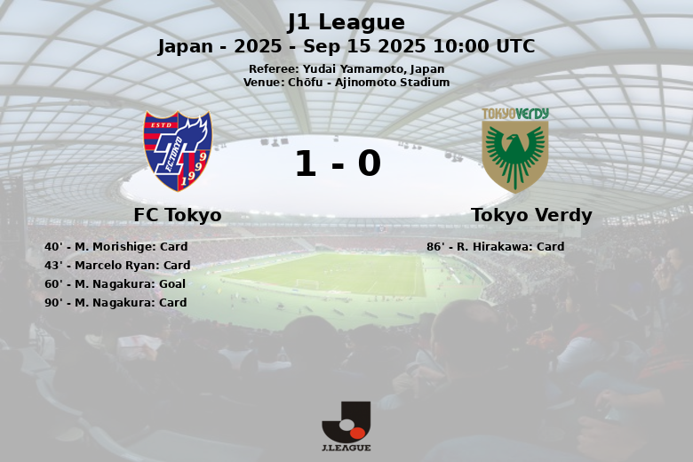 Chōfu, Japon – Dans un match disputé au stade Ajinomoto, le FC Tokyo a réussi à battre de justesse le Tokyo Verdy dans un match rempli d’intensité et de cartons. Sous l’œil vigilant de l’arbitre Yudai Yamamoto, le match, correspondant à la 29e journée de la saison 2025 de la J1 League, a tenu les supporters en haleine.