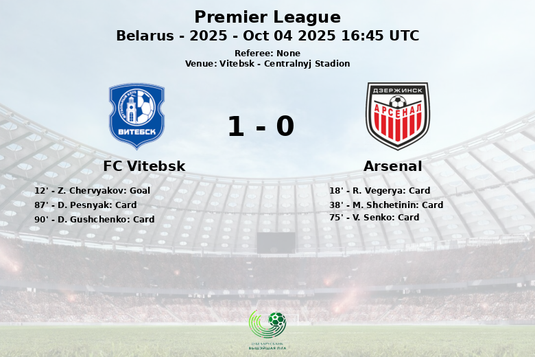 Vitebsk, Biélorussie – Dans un match rempli de tension et de cartons, le FC Vitebsk a battu Arsenal au Centralnyj Stadion, dans un match correspondant à la 24e journée de la Premier League biélorusse. Le seul but du match est arrivé tôt, à la 12e minute, grâce à Z. Chervyakov, sur une passe décisive de Y. Skibskiy, déclenchant la joie parmi les fans locaux.