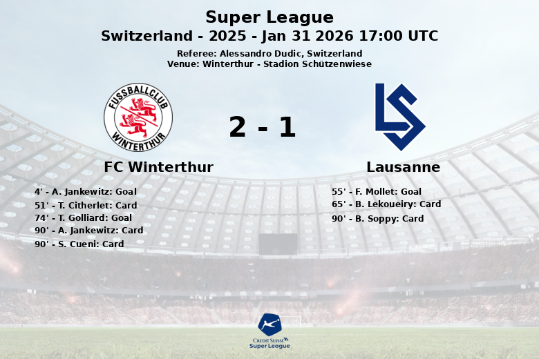 En seconde période, Lausanne a égalisé à la 55e minute grâce à un but de F. Mollet. Cependant, Winterthur a démontré sa capacité de réaction lorsque T. Golliard a marqué le but de la victoire à la 74e minute.