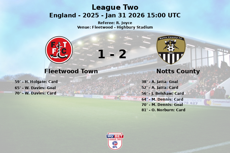 Fleetwood Town vs Notts County Jan 31 2026 15:00 UTC