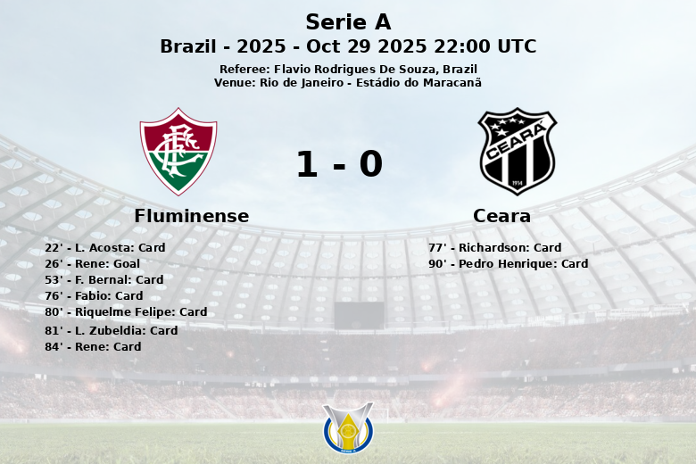 Le match a été marqué par un nombre élevé de fautes, 17 commises par Fluminense et 10 par Ceará, ce qui a entraîné un total de 7 cartons jaunes pour l’équipe locale et 2 pour les visiteurs. L’arbitre, Flavio Rodrigues De Souza, a passé une soirée bien remplie à siffler des infractions. Malgré leur supériorité en termes de possession et de tirs, Fluminense n’a réussi à convertir qu’une seule occasion, tandis que Ceará n’a pas réussi à inquiéter le gardien adverse. Le match faisait partie de la 12e journée de la Serie A brésilienne lors de sa saison 2025.