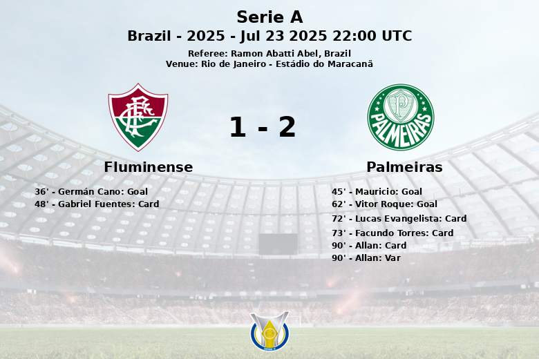 Fluminense, dominant la possession avec 54%, a ouvert le score à la 36e minute avec un but de Germán Cano sur penalty. Cependant, la joie locale fut de courte durée, puisque Mauricio a égalisé pour Palmeiras à la 45e minute, sur une passe décisive de Ramón Sosa.