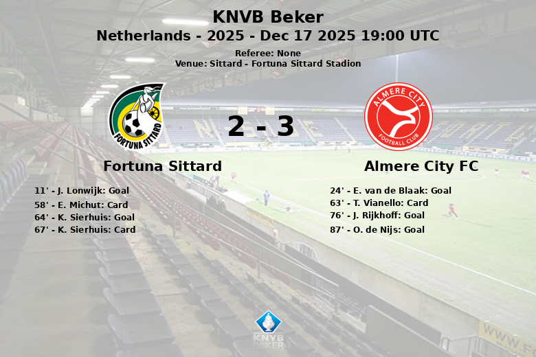 Dans un match rempli d’émotion et de rebondissements, Almere City FC a remporté une précieuse victoire à l’extérieur contre Fortuna Sittard au tour des 32èmes de la KNVB Beker. Le match, qui s’est déroulé au Fortuna Sittard Stadion, s’est terminé par un score qui reflète l’intensité vécue sur le terrain.