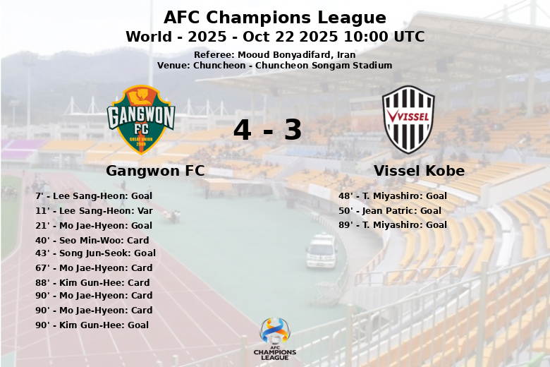 Chuncheon a été le théâtre d’un match animé de l’AFC Champions League où Gangwon FC et Vissel Kobe ont fait match nul dans une rencontre pleine de rebondissements. Gangwon FC a dominé la possession avec 54% contre 46% pour Vissel Kobe, et a créé plus d’occasions de but, totalisant 17 tirs, dont 5 cadrés. L’équipe locale a pris l’avantage grâce aux buts de Lee Sang-Heon (annulé par la VAR), Mo Jae-Hyeon et Song Jun-Seok, faisant preuve d’une grande efficacité en première mi-temps. Cependant, Vissel Kobe a réagi en seconde période avec une belle démonstration offensive. Miyashiro (à deux reprises) et Jean Patric ont marqué pour l’équipe visiteuse, égalisant le score et mettant à l’épreuve la défense locale. Le match a été âprement disputé, avec 16 fautes commises par Gangwon FC, entraînant trois cartons jaunes et un carton rouge pour Mo Jae-Hyeon en fin de match. Kim Gun-Hee marquerait à la fin pour l’équipe locale. Malgré les efforts des deux équipes, le match s’est soldé par un match nul, laissant un goût doux-amer pour les deux camps.