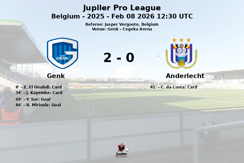 Le match, arbitré par Jasper Vergoote, a vu un carton jaune précoce pour Z. El Ouahdi de Genk à la 8e minute, suivi d’un carton jaune pour C. da Costa d’Anderlecht vers la fin de la première mi-temps.