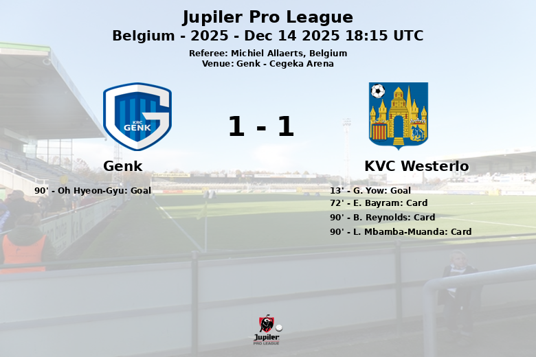 Alors qu’il semblait que Westerlo allait s’assurer la victoire, Oh Hyeon-Gyu a égalisé pour Genk à la 90e minute. Les derniers instants ont été intenses, Westerlo recevant deux cartons jaunes supplémentaires attribués à B. Reynolds et L. Mbamba-Muanda.