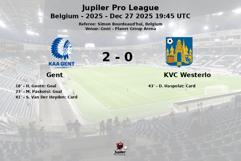 Gent vs KVC Westerlo Dec 27 2025 19:45 UTC