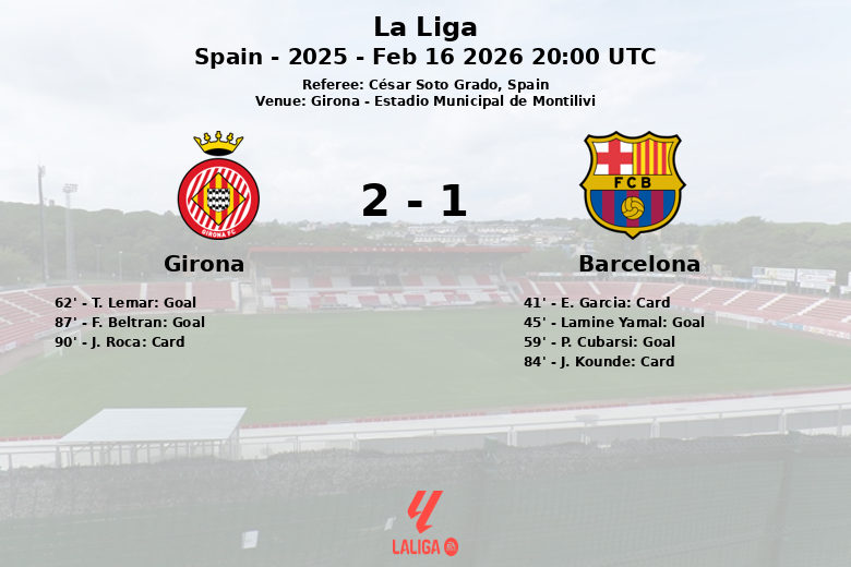 Le match s’est enflammé en seconde période. Lamine Yamal a manqué un penalty juste avant la mi-temps, mais s’est racheté en offrant une passe décisive à P. Cubarsi à la 59e minute pour le premier but de Barcelone. La joie culé fut de courte durée, puisque T. Lemar a égalisé pour Gérone à la 62e minute, sur une passe de V. Vanat. Le match s’est poursuivi à un rythme effréné et à la 87e minute, F. Beltran, sur une passe de J. Roca, a porté le score à 2-1 pour Gérone. Les cartons ont également joué un rôle important, E. Garcia et J. Kounde recevant des cartons jaunes pour Barcelone, tandis que J. Roca a été expulsé pour Gérone en fin de match, après un match très disputé.