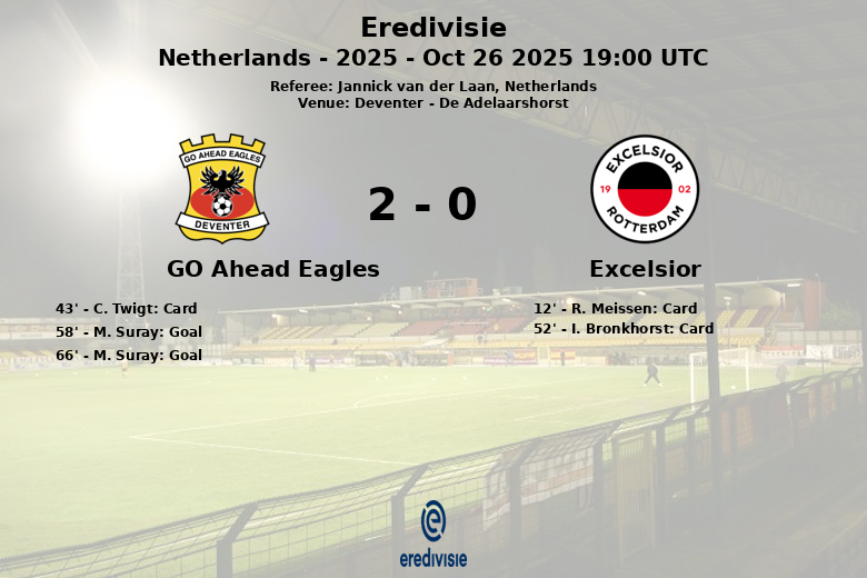 Titre: GO Ahead Eagles Domine Excelsior à Deventer avec un Doublé de Suray