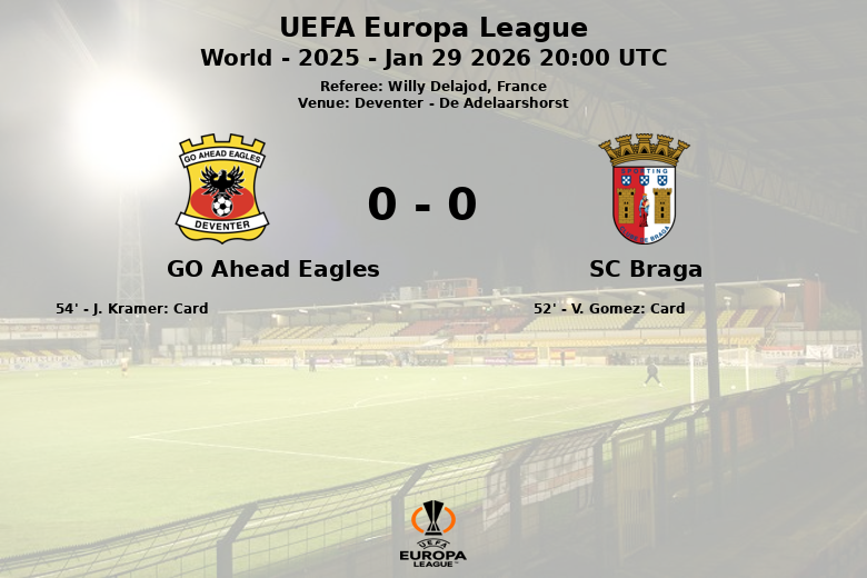 Deventer, Pays-Bas – Dans un match comptant pour l’UEFA Europa League, GO Ahead Eagles et SC Braga se sont affrontés au stade De Adelaarshorst, se soldant par un match nul qui reflète la parité du jeu. Le match, arbitré par le Français Willy Delajod, a été caractérisé par un rythme tactique et peu d’occasions de but franches.